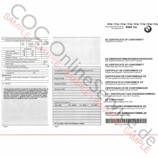 Sollte die Lieferung eines COC für Ihre Fahrgestellnummer (VIN) nicht möglich sein, stornieren wir die Bestellung umgehend und erstatten den vollen Kaufpreis zurück.